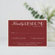 A classy and elegant calligraphy burgundy and cream retro old money wedding rsvp card. That has a vintage and modern red background with cream script and hand written whimsical stylish wording. Luxurious and chic with handwritten lettering. It is all editable by clicking on the personalize button.