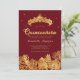 Classy Burgundy Red Gold Quinceañera Floral Tiara Invitation
