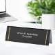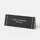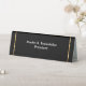 Classy business office executive desk name sign designed with two gold coloured design elements that add a touch of class and name space you can personalise with the name of your employees or management team. Presented on high quality plastic suitable for an office professional such as a Doctor, office manager, president, or medical professional. Available in bulk or one off.