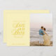 This classy elegant save the date card in butter yellow features a minimalist design with "save our date" styled in a mixture of classic text and elegant calligraphy script that lends a sophisticated, classy style with old money vibes. It also includes a placeholder for your photo that covers half of the front of the card. The back of the card includes an editable placeholder to indicate your wedding website URL, which can also be deleted if the URL is not yet available.