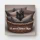 This decorative plaque is shown with a cute cat in a pillow basket print.