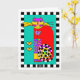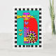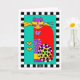 This fabulous feline with the long black-and-white-striped tail and big heart is one colourful and classy cat with her lovely leg warmers and posh pedicure. Interior card bordered with heart / paw motif and date area for your writing pleasure. ~ karyn