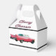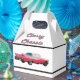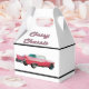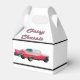 Gable-style favour box with an image, on the front and back, of a classic pink Cadillac and the words “Classy Chassis” (50s slang) in 50s-style pink and black polka dot letters. Black borders. See the entire Nifty 50s Favour Box collection in the PARTY FAVORS section.