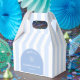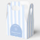 This elegant coastal-inspired favour box design features a blue and white striped background with trendy arch shape and seashell motif. All colours (including the seashell and arch) can be change by you inside the design tool.