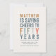 Classy colourful cheers to fifty years birthday invitation card. Classy muted tones. Part of a collection.