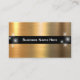 Classy gold tone editable business cards created with a gold coloured printed graphic background that mimics the look of shiny gold metal and your business or professional name featured on the front. Presented on glossy business card stock.