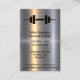Classy Fitness coach and trainer business cards with some cool factor in a design template you can customise online in a simple visiting card layout that includes a silver tone background graphic and fitness dumbbell in an editable calling card with a touch of class.