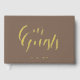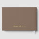 This guest book provides an ideal space for your friends and family to leave their signatures and warm messages. Made with high-quality materials, it showcases the words 'Guest Book' in elegant gold foil calligraphy script, against a stylish warm taupe brown backdrop. Personalise it with your wedding date on the front and your initials on the spine to make it distinctively yours. This cherished keepsake will serve as a beautiful reminder of your special day for years to come.