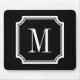 Classy custom monogram mouse pad | Black and white. Elegant design for men women and kids. Monogrammed with your glamourous name initial letter. Cute personalised Birthday gift idea for dad, father, mum, husband, wife, son, daughter etc.