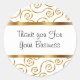 Classy gold and white damask pattern customer thank you stickers you can add to invoices, letters, shipping cartons or gifts as a show of thanks. Customise with your own thank you message or leave it as is to show thanks and appreciation for their business. Don't just thank your customers, put it in writing.