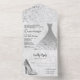 Classy Damask, Silver Stiletto & Gown Quinceañera All In One Invitation