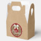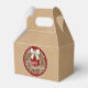 This beautifully designed holiday favour box features elegant watercolor artwork depicting a wreath adorned with a white bow, pinecones, green holly leaves, red berries, and pine needles, along with a customisable 'Happy Holidays' greeting. Its classy yet rustic style captures the essence of the December holiday season and appeals to those who appreciate artistic illustrations.