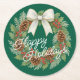 Classy December Wreath With White Bow Holiday Round Paper Coaster