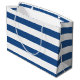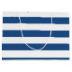 Classy Deep Blue Stripes Pattern With Name Large Gift Bag