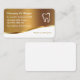Classy Dentist business card with gold look modern background graphic and tooth symbol along with a simple layout you can customise online. Lets you hand out your business cards in style and is designed for a Dentist office, Orthodontist, or any dentistry industry business. Presented on rounded corner business card stock for a more durable design.