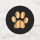 Classy dog themed party or special event confetti with gold coloured dog paw print on a black background for an upscale event, special occasion, or charitable event for a pet rescue.