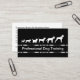 Classy dog training theme business cards with graphic canine variety of dogs and silver coloured design elements digitally printed on the front to ad a touch of class in a two side design that includes two side printing. Created for a professional Dog Trainer, canine obedience classes, or agility training.