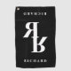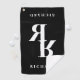 Classy double name initials monogram template Golf Towel. Personalized sports gift for him or her. Monogrammed golfing gifts for men and women. Elegant typography template with back to back name initials. Glamorous Father's Day and Birthday gift ideas for legendary golfer, husband, dad, father, best friend, co worker, boss, colleague, coach, instructor, trainer, teacher, grandpa, retired person, golf lover etc. Add your own surname or first name. Including hook to hang it up. Unique golf accessories for friends and family. Black and white or custom color.