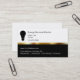 Classy electrician business cards with smart design that includes a light bulb symbol, gold looking design element, text you can customise, and blank second side you can use to add anything you want since two side printing is included.