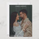 Announce your celebration with refined style using this classy and elegant black and white photo design. Showcasing a full-bleed photograph paired with graceful script lettering, this modern yet timeless layout highlights your love story in a clean, sophisticated way. The monochrome palette adds a touch of luxury while keeping the focus on your special moment. Perfect for couples who appreciate understated elegance and contemporary design, this customizable piece allows you to personalize names, date, and location for a polished and memorable announcement.