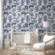 Classy Elegant Rustic Blue Forest Animals Toile Wallpaper