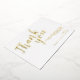This design features title "Thank You" in real gold foil modern script font with detail in real gold foil modern sans serif font on white background.