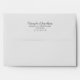 Featuring bride and groom's name in grey modern script font with return address in modern sans serif font on top flap of the envelope.
