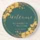 Classy Emerald Green Gold Floral Wedding Welcome Coaster