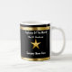 Classy employee of the month coffee mugs including a gold coloured star and geometric design elements along with text templates you can customise online. Designed to reward excellence and productivity at work with the full design displayed on both sides of the coffee cup for right or left handed drinkers.