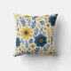 This beautifully arranged classic Mediterranean botanical flower design features a vibrant pattern of yellow and dark blue flowers and leaves on a crisp white background. The design is ornate, stylish, and eclectic, making it appealing to artistic crafters and enthusiasts of vintage retro styles. It is available on a variety of modern decor products such as fleece blankets, lamps, and bedding.