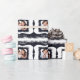 Classy blue family photo wrapping paper, these fully custom gift wrap can be personalised for the holiday season. Blue with white snowflake accents, this is classy Christmas gift wrap, add your family photo to the design, and your family name. Sophisticated personalised family photo design for the modern family at Christmas. Design says Happy Holidays and add your family name. blue and white snowflakes