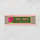 Classy and elegant golden frame with pink green stripes and cute watercolor pink rose flower design modern stylish discount business card. It's easy to change colour or text. Please click the " Customise" button and use our design tool to modify this template.