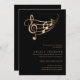 This editable music graduation party invitation features a wavy stave with music notes and a treble clef in faux gold on a black background complemented by elegant typography. Ideal for music college senior graduates. Personalise it with your own text, and take advantage of the editing tool to fine-tune the font size and placement. If you need assistance with customisation, please don't hesitate to message us on Zazzle