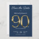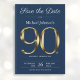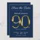Classy Gold Navy Blue 90th Birthday Party Save The Date
