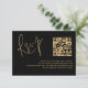 Classy Gold Script Black QR Code Wedding RSVP enclosure making it convenient for your guests to reply by scanning your QR code leading to your wedding website. A MINI size to enclose with your invitations. RSVP is in an elegant set handwritten style script and the rest of the text easily personalise to your own. Text and background Colours can be changed as required via the edit further button. Add your QR code to your wedding website reply page so your guests can RSVP and see all the details without the need for separate RSVP and details cards. Simply change the sample URL in the template with your own URL of your chosen page of your wedding website and your QR code will be automatically generated to update the sample code in the design,