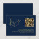 Classy Gold Script Navy Blue QR Code Wedding RSVP Card