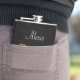 The flask itself is fine. It’s a cheap flask, obviously bought in bulk, however am prepared to overlook that. Given that it is a personalized item, I would have liked to have seen gift boxing instead of the generic packaging. Terrible printing, and/or quality. It’s a cheap, tacky vinyl. It is not cut straight and is also applied in a way that it is overhanging the bottom, causing the glue to catch on items and it will eventually roll and tear, damaging the wrap.