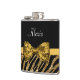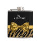 Classy Gold Zebra Print FAUX Glitz Bow With Name Hip Flask