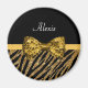 Classy Gold Zebra Print FAUX Glitz Bow With Name Magnet