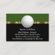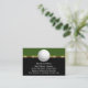 Classy business cards for a golf theme designed with a golf ball closeup and gold tone design elements in a classic business card layout.