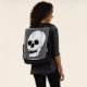 This Bold Face adult backpack with a interchangable front face has a classy Gothic looking white skull on a black and white damask background with white curled scrolls.