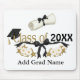 Class of for any year design featuring black ribbon and flower accents for the Classy Graduate. Design has gold and black text and white flowers with Mortar and diploma. Customise Name and year area.