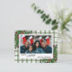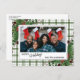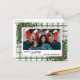 Unique, classic, trendy, pretty and decorative Holiday card. Cute Happy Holidays greeting text and room to customise or personalise with a photo, family name (or individual names) and message of your choice. Framed by Burgundy wine red berries and dark green foliage wreath bouquets on a classy green and white French country cottage gingham check background.
