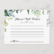 This classy greenery tropical wedding advice card is perfect for a modern wedding. The design features predominantly green tropical leaves neatly arranged. These cards are perfect for a wedding, bridal shower, baby shower, graduation party & more. Personalise the cards with the names of the bride and groom, parents-to-be or graduate.