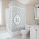 Classy Grey White Moroccan Tile Pattern Monogram Shower Curtain