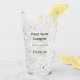 Groom glass with top hat and moustache motif and stencil lettering. Great for stag nights and wedding receptions. Personalised with name and date on back.