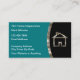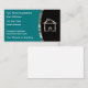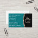 Classy home inspection or maintenance business cards in an upscale graphic design with silver tone design elements and teal and black background with house symbol. A modern calling card you can use as new visiting cards you hand out to clients.