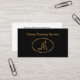 Classy house cleaning services business card template online designed with gold colored design element and cleaning symbol. A smart two side design that includes two side printing for a house maid, house cleaner, or cleaning lady.