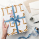 House warming gift wrap paper with beautiful simulated gold houses printed in an all over pattern. Give the gift of elegance and wrap your house gifts in style.
