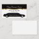 Classy limo driver business card template with image of a limousine, gold coloured design element that adds a touch of class, and elegant company name title style that adds an upscale look when you present your business cards to clients. Designed as a limousine service, chauffeur, car service, or classy taxi.